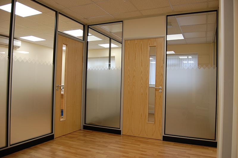 The Directors offices to have full height single glazed window units with the dividing walls to have part height single glazed units.