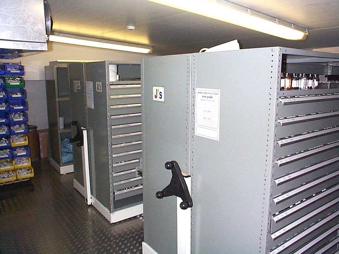 The mechanically assisted mobile system incorporated Industrial Angle uprights and steel shelves with clad sides and rear, all of which were bolted to ensure maximum rigidity.