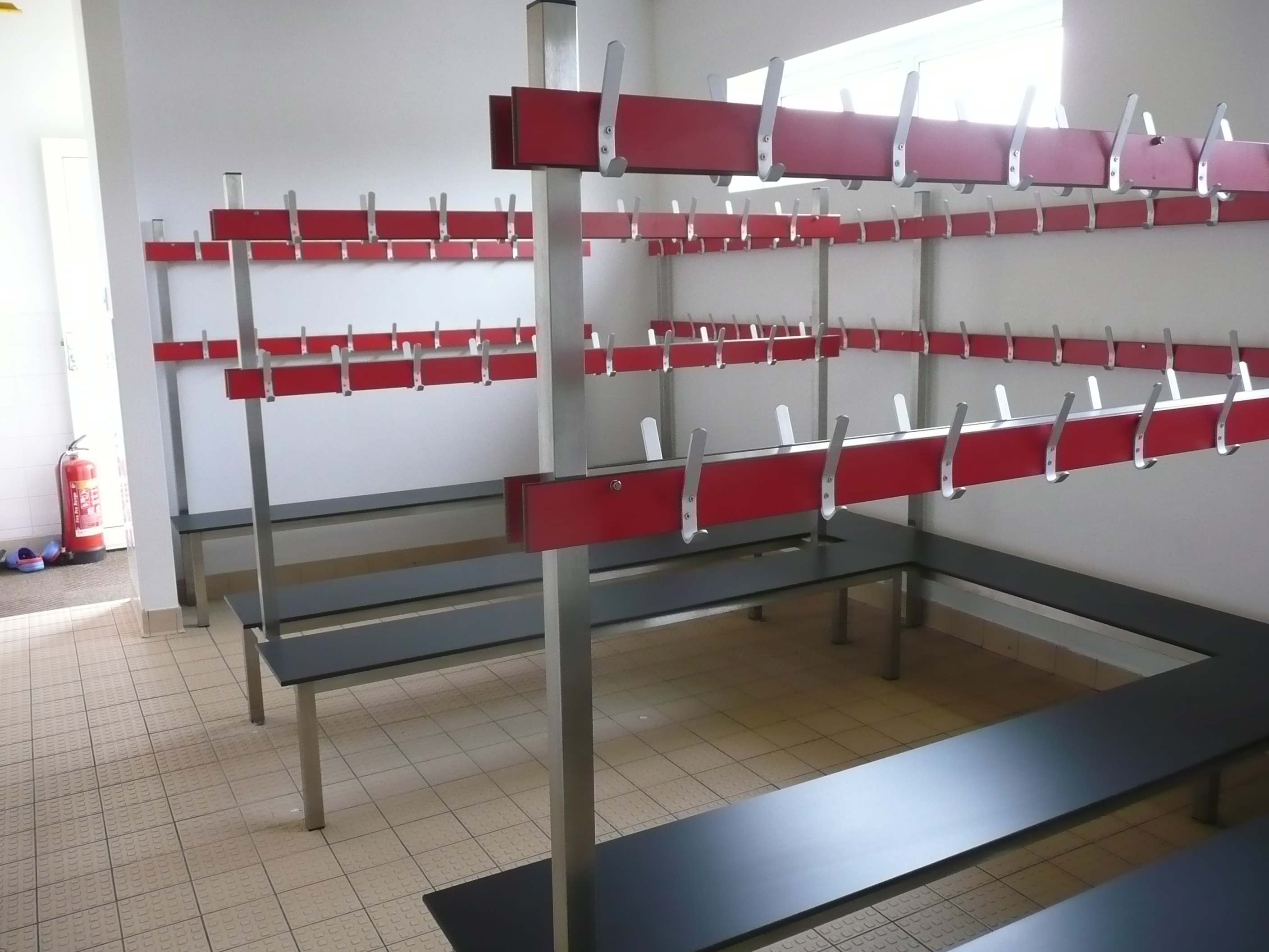 ESE Projects has designed and installed cloakroom benches, bench seating, wall shelves and clothing racks in hundreds of different changing facilities including leisure centres, sports clubs, golf clubs, swimming pools, schools, hospitals, the emergency services, village halls, and industrial / commercial changing rooms in big businesses, factories, cleanrooms and offices.