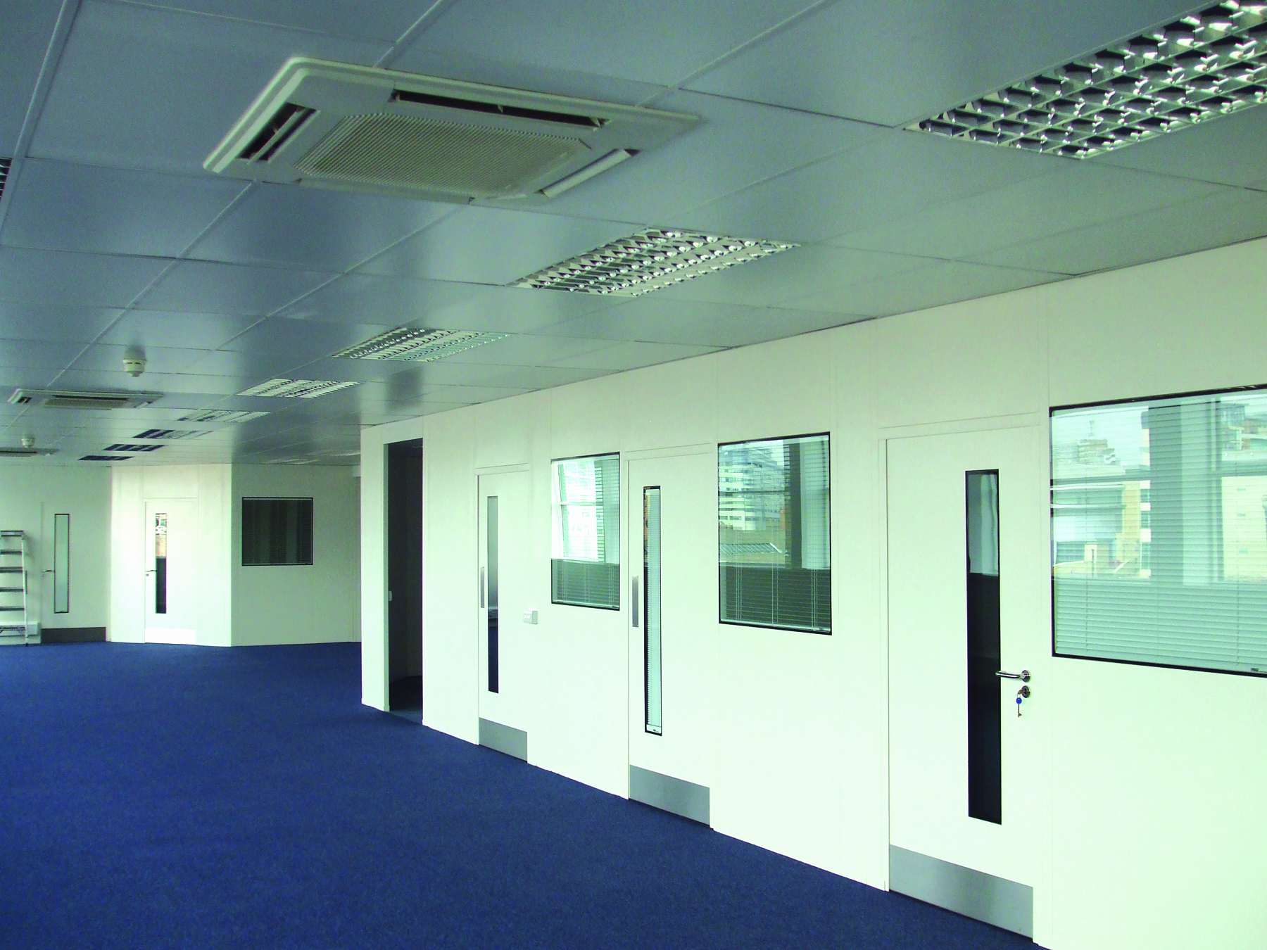 If extra support or stability is required vertical steel mullions can be used every 4 or 5 panels, which are also used when partitions are being stacked on top of each other to form higher partitioning runs, particularly when used around mezzanine floors perimeters or if suspended ceilings are to be fixed in the room you have just created.