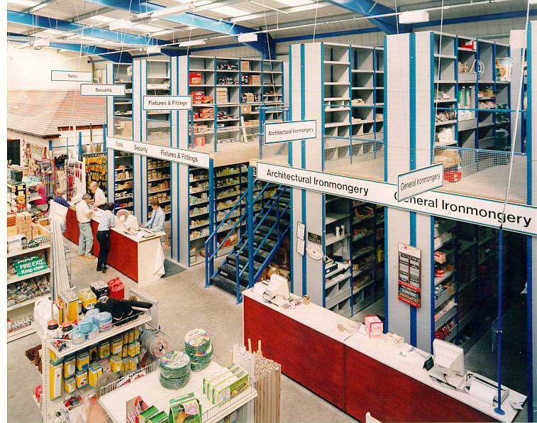 The ground floor then has standard steel shelves and accessories added where required in the runs of shelving.