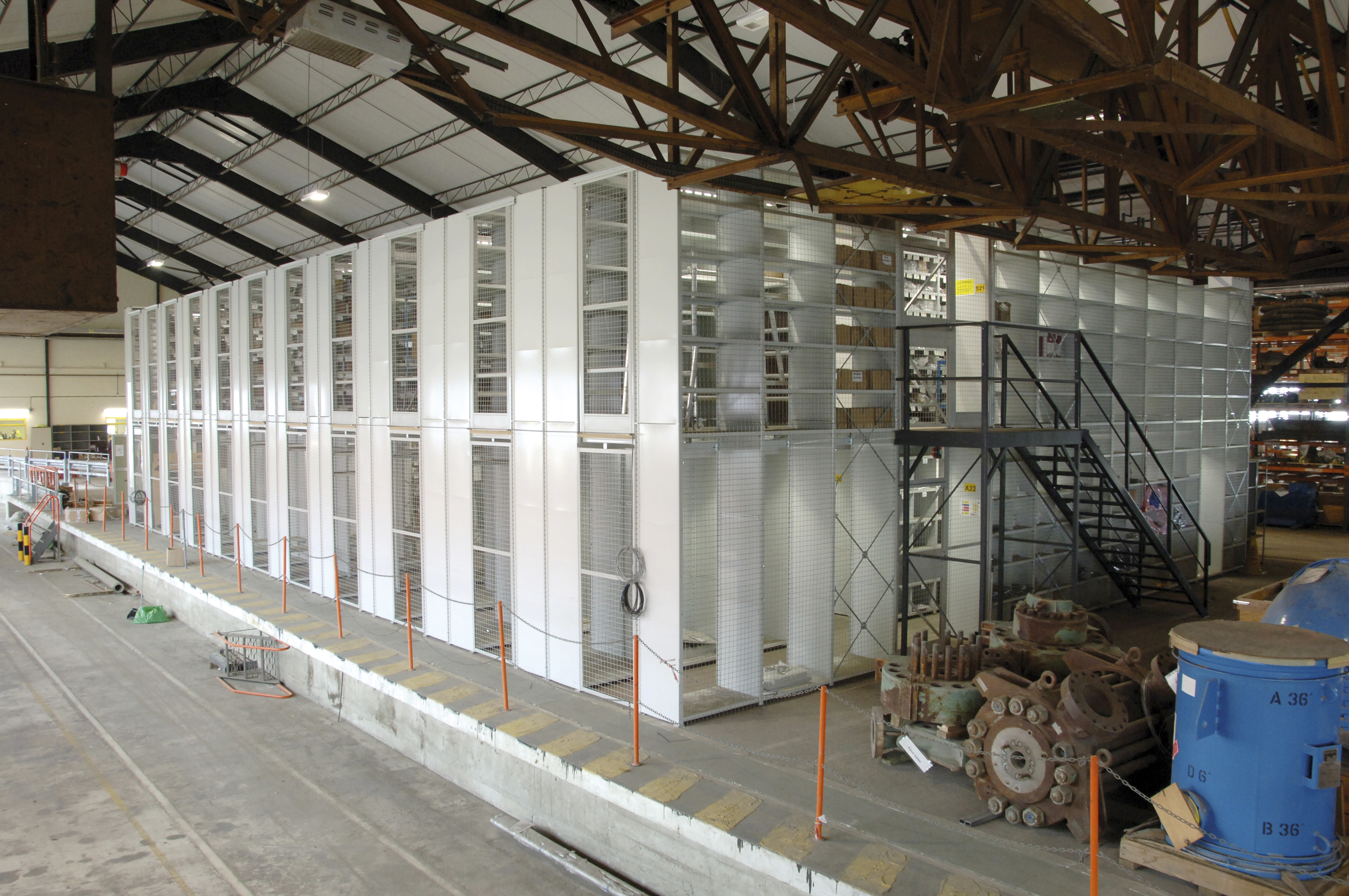 The ground floor then has shelf beams with chipboard, timber or mesh shelf panels added where required in the runs of racking.