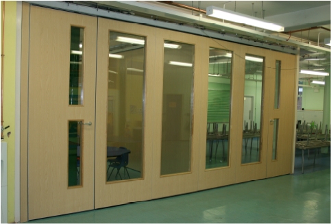 Over the years we have installed folding walls and sliding walls from basic concertina doors in emergency treatment areas or general purpose rooms / offices that occasionally need sub-dividing to large training and seminar / teaching facilities that need good quality sound absorption / sound reduction and aesthetically pleasing sliding walls or folding walls.