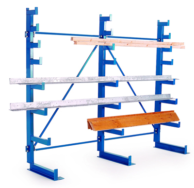 Cantilever racking systems are ideal for plywood, chipboard & timber sheets, plasterboard, building materials, pipe & tubing, sheet steel, roll goods, extrusions etc and the typical components are: