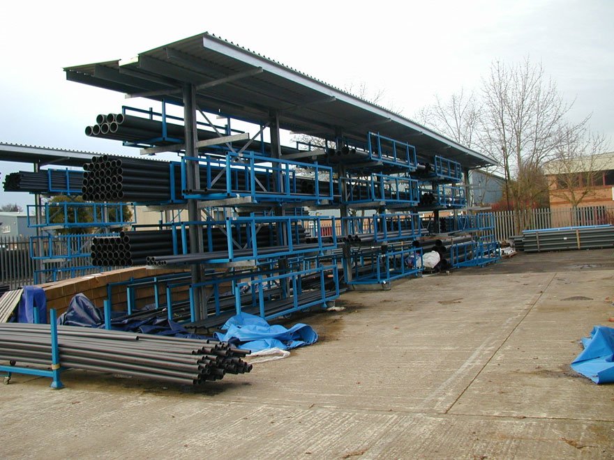 ESE Projects has been designing and installing Cantilever racking (often also referred to as steel Bar racks or Sheet racks as these are often the type of materials stored on the racking) since 1975. Over the years we have carried out cantilever rack installations from just a few bays to store light duty plastic pipes, tubes, gutters and the like, to huge design and build projects to store thousands of sheets of plasterboard, steel stud and general partitioning materials for a major partition and insulation manufacturer. Bar racks / sheet racks are ideal for those applications where you need to store long or bulky product like timber, tubing, plasterboard etc horizontally, as the racks have no front uprights to interfere with the placement or retrieval of many different lengths of loads, thus lowering your handling cost and saving you time and money.