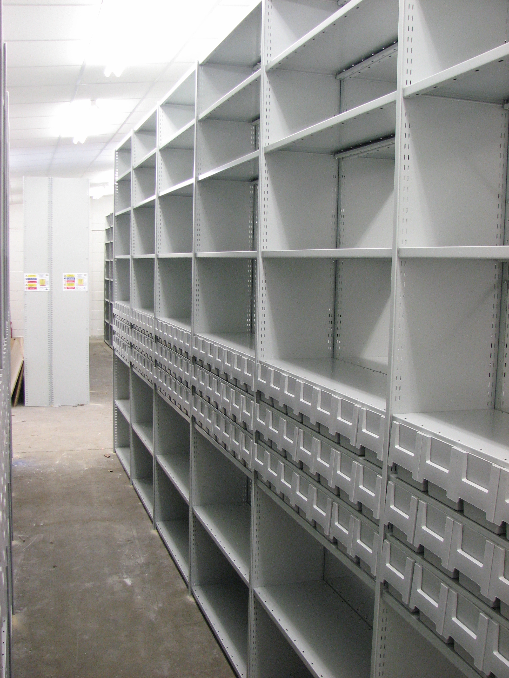 We have been designing, supplying and installing Stormor Shelving systems since it was launched in 2004, as it is a UK manufactured, modular, bolt free alternative shelving system designed specifically to replace the nut and bolted Rolled Edge (now Solo) and British Standard shelving systems (now Mono is the nearest) from the 1950's.